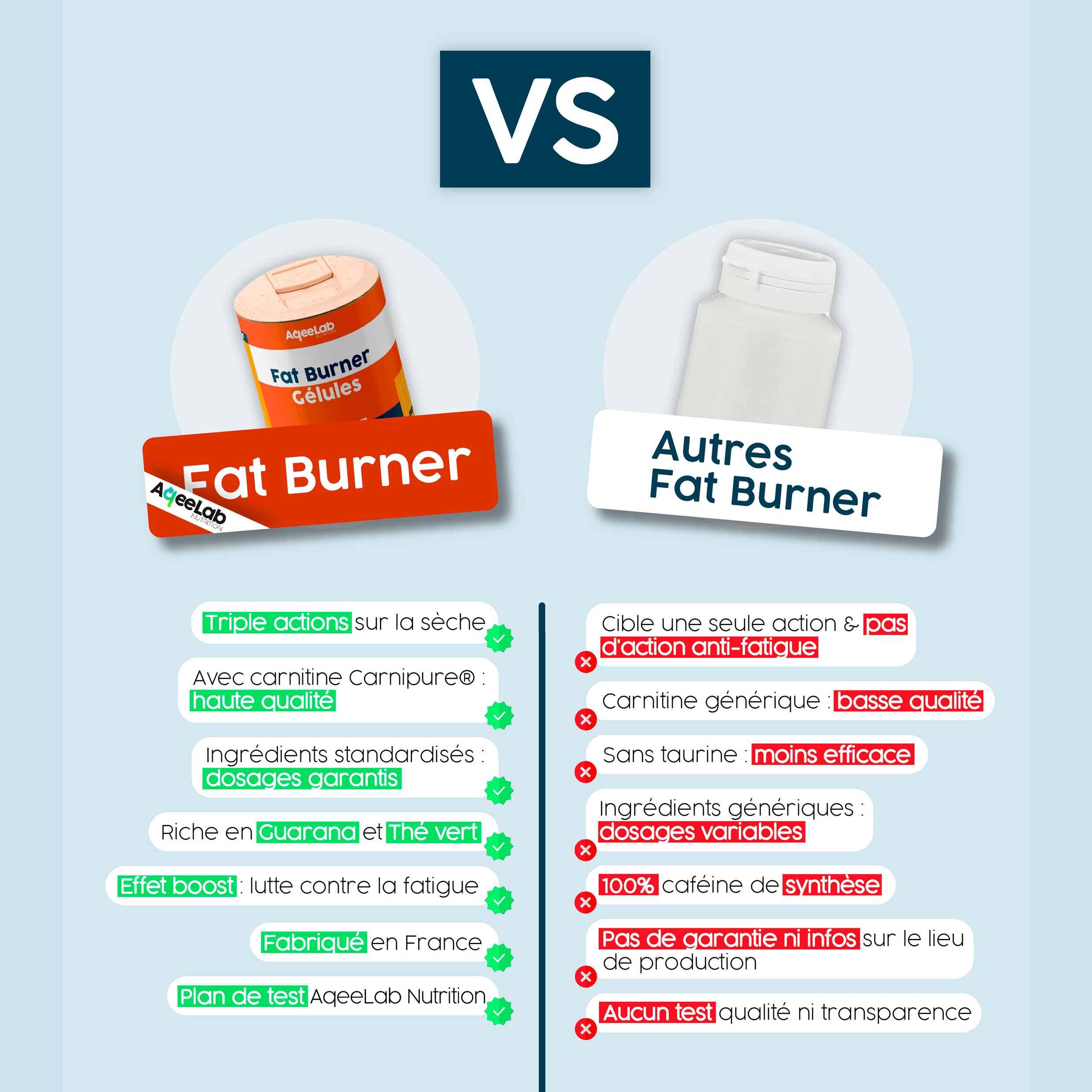 Le Fat Burner – Brûleur de Graisse en gélules d’Aqeelab Nutrition est un complément idéal pour optimiser votre période de sèche. Conçu pour déstocker les graisses, booster le métabolisme et limiter la fatigue, il s’appuie sur une synergie unique de 8 ingrédients de qualité supérieure, dont 1300 mg de Carnipure® pour un déstockage efficace.